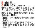 なら「る・し・し」を簡略化した見出し「はむむ」で引くだけです。構成要素の読みなどの頭文字をつなげて見出しとするだけ。だけど読めない・知らない構成要素があったら「ん」で見出しをつけます(トランプのジョーカーだと思ってください)。最初とまどいますが、電話で漢字を伝える場合をイメージしながら見出しをつけていけばすぐ慣れます。